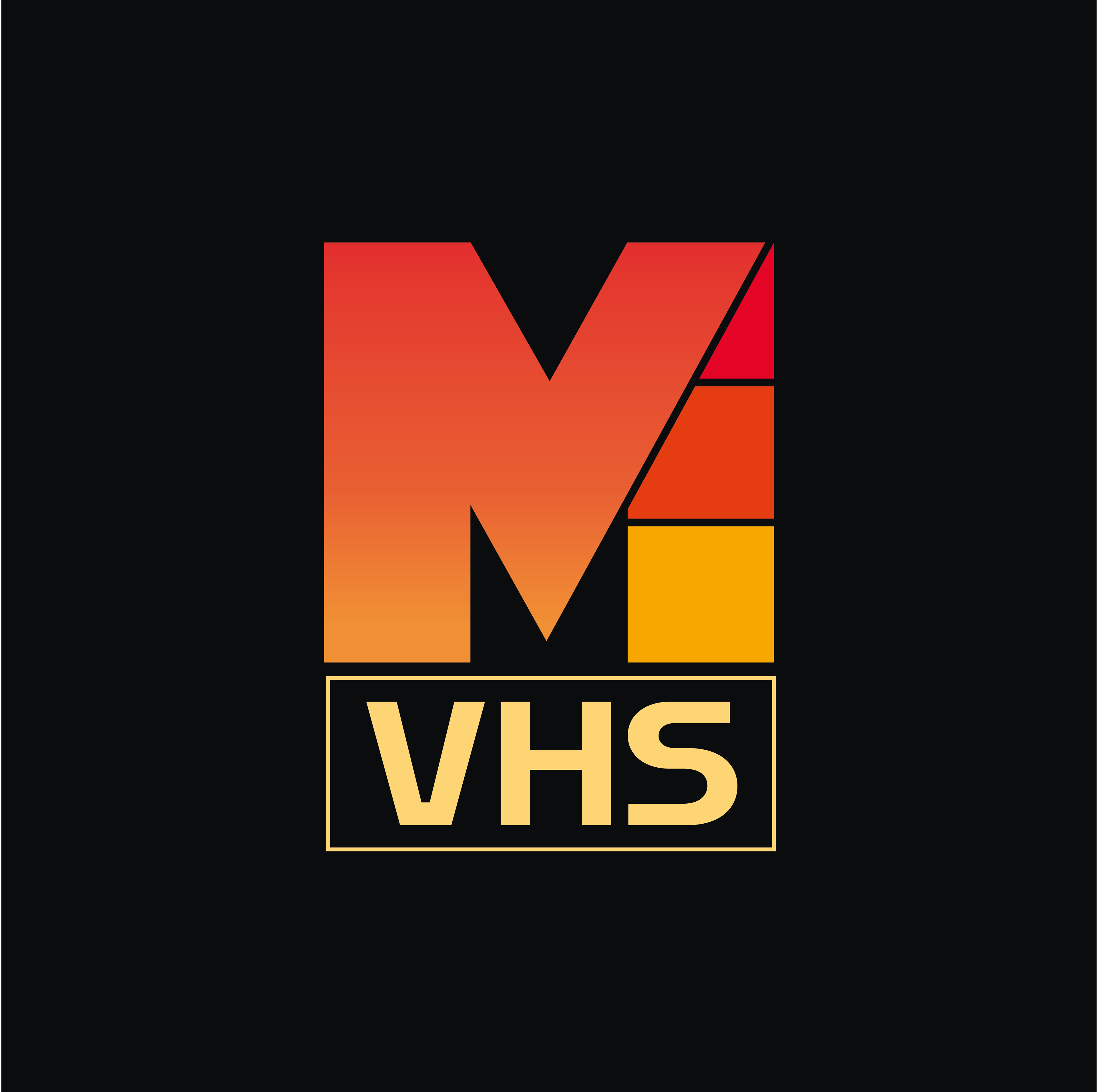 Le monogramme « M » a été travaillé comme un élément graphique, intégrant des formes géométriques colorées qui rappellent les artefacts visuels des bandes VHS. Le bloc “VHS”, encadré et contrasté, vient ancrer le logo dans cet imaginaire rétro tout en assurant une bonne lisibilité sur les supports digitaux.